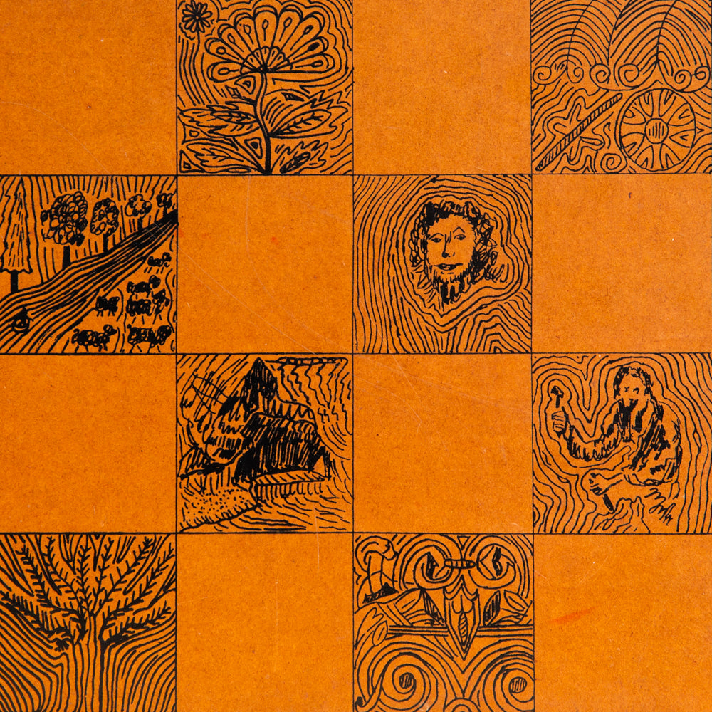 So much whimsy and joy to be found in this simple board game, a set that was particularly hard not to keep! The only condition notes to report are some slight wear to the board underside and edges, whilst a few chess pieces are ever so slightly wonky (in a charming way) The light Queen also bears a couple of spots of ebony stain from the finishing process.