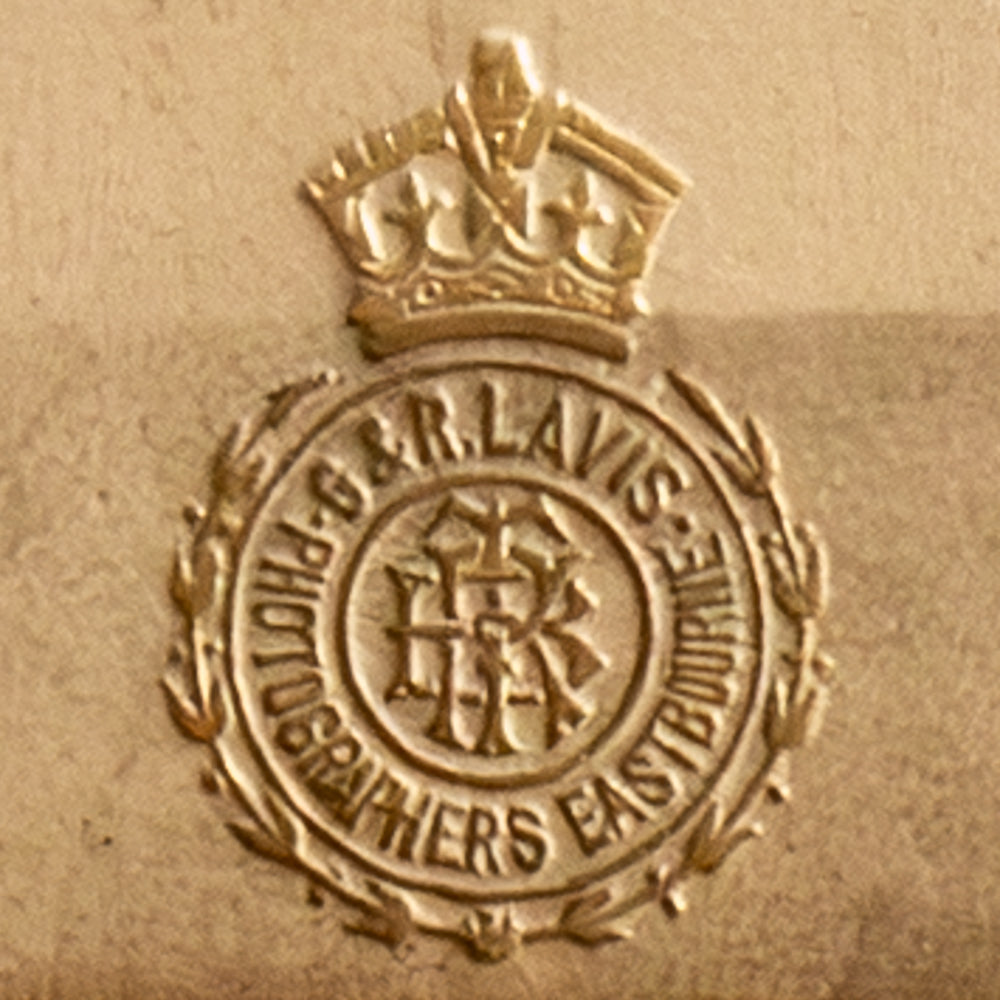 It can be dated between the 1880s to 1890s, partially due to the dress style (length, sleeves, lace) and popularity of this dog breed around that time. However, we also know that the studio moved into their Eastbourne premises between 1866-67, and the peak popularity of cabinet photographs in Britain was around 1880 to the early 1900s. As the elaborate gold seal and Royal Warrant to the reverse suggests, their patrons were Queen Victoria and her eldest son Albert Edward (the future King Edward VII) Therefore, the latest possible print year would have been 1901.