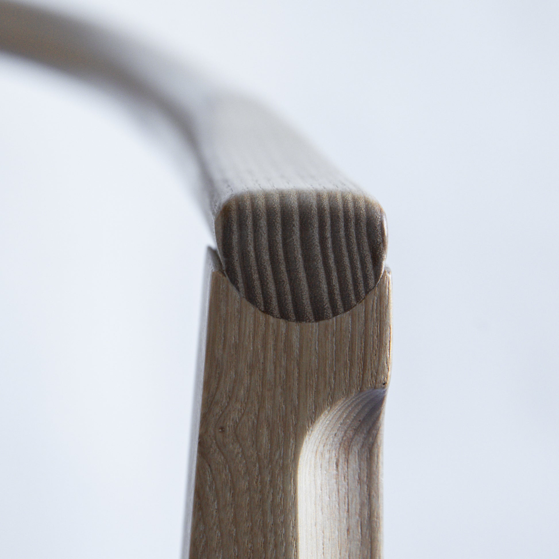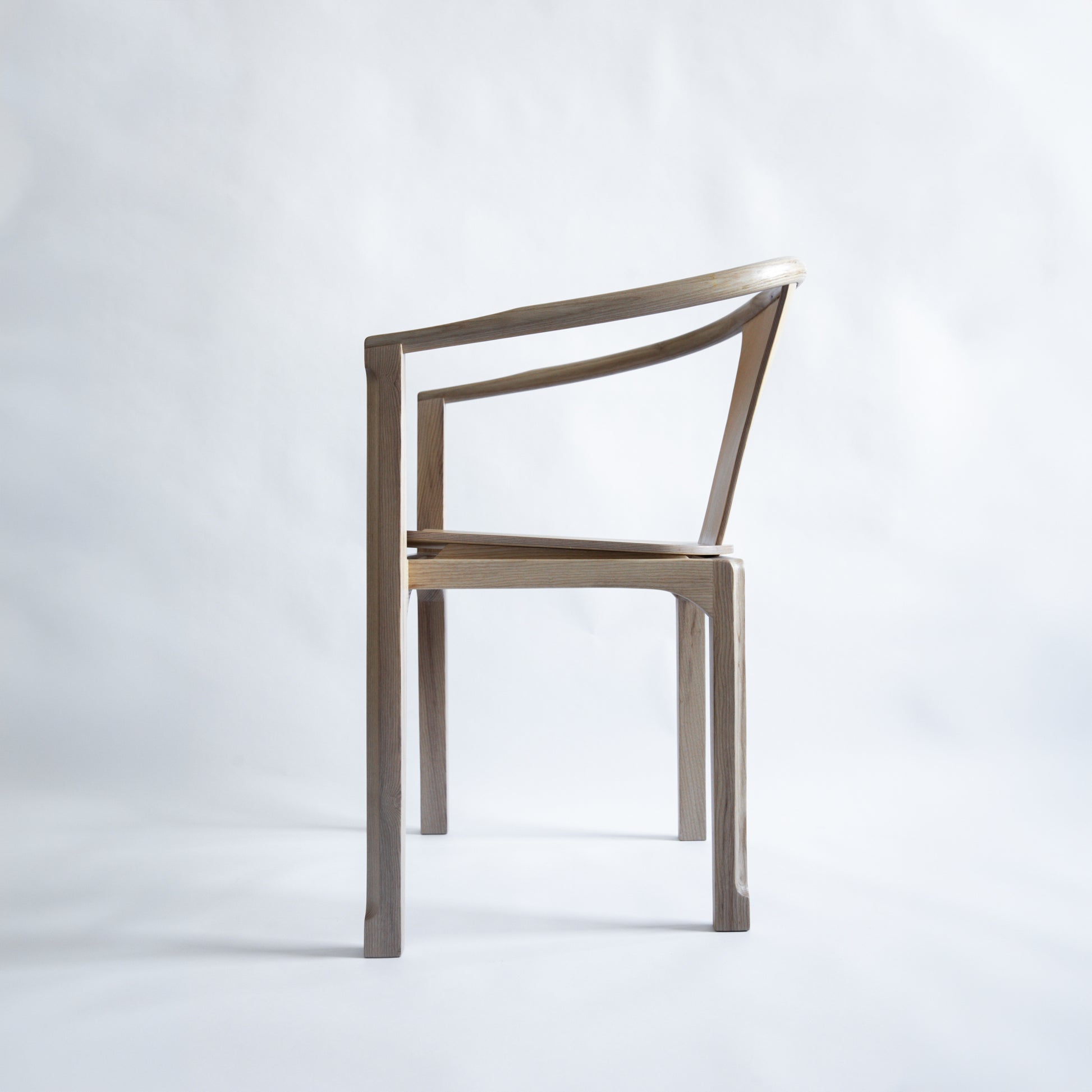 Wander any street in the world and they'll be there; broken, repaired, brand new, poking out of a skip, floating down a canal, or gathered around a table of a high-rise balcony. Tearing one apart to form an exploded view sculpture piece, Adam knew each of the elements needed to craft a joined (poly) dining chair inspired by its plastic counterpart, using 100% British grown ash. You'll see parallels in the sweeping steam bent armrest, unsupported by back legs, and lightweight sculptural back/seat.