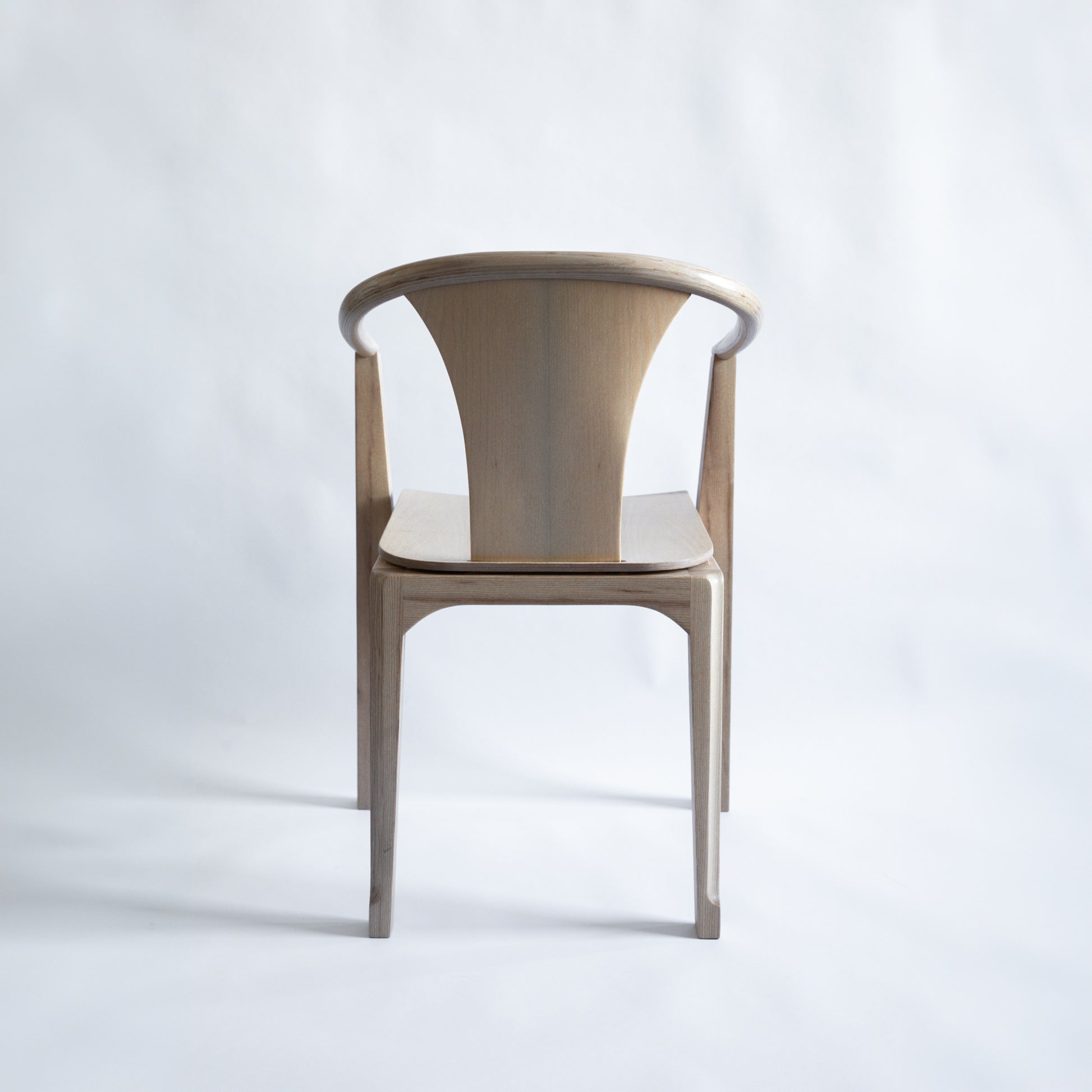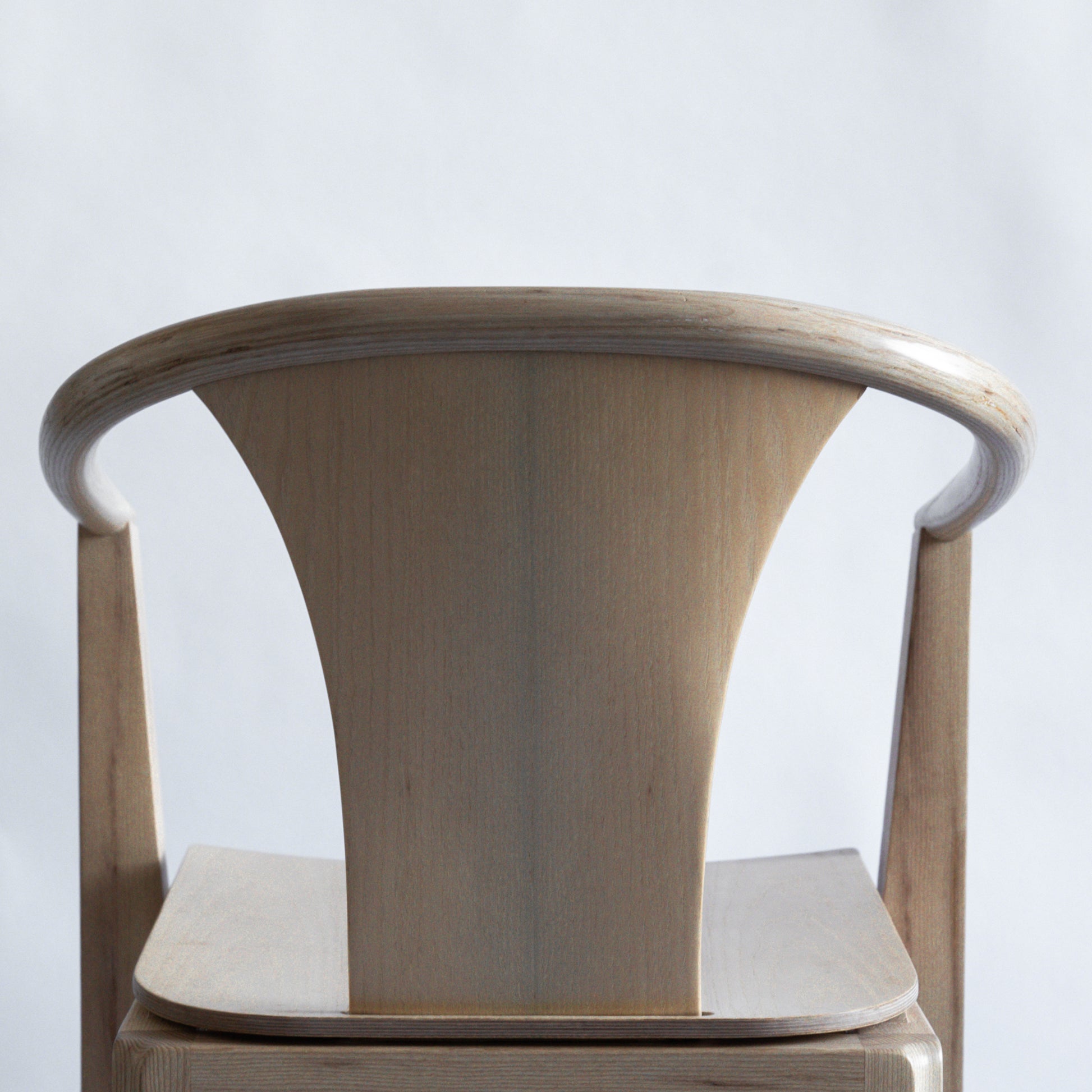 The visually striking solid ash and plywood 'Polybloc' chair. Designed by Adam Wolstenholme as an elegant ode to the most widely produced chair on the planet, forming the first instalment of his ongoing 'Throwaways' series.